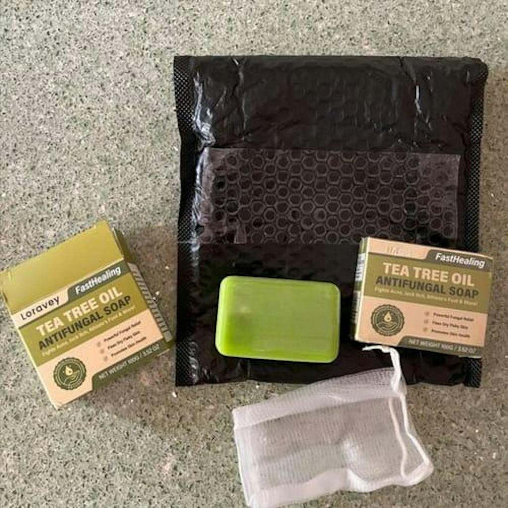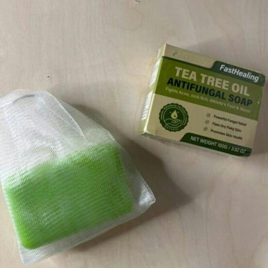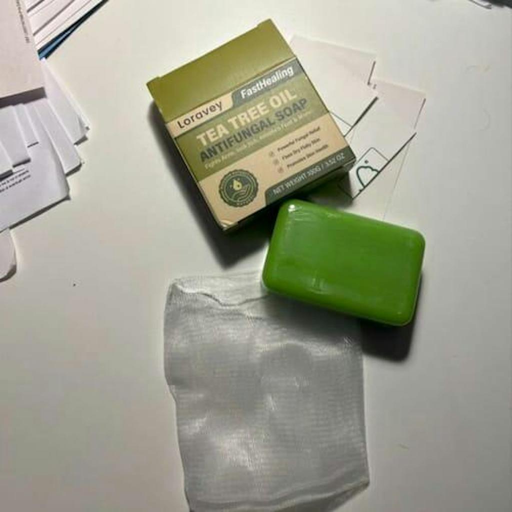 Produit naturel et efficace. L'odeur de tea tree est agréable. Le savon dure longtemps, environ un mois avec 2 utilisations par jour.